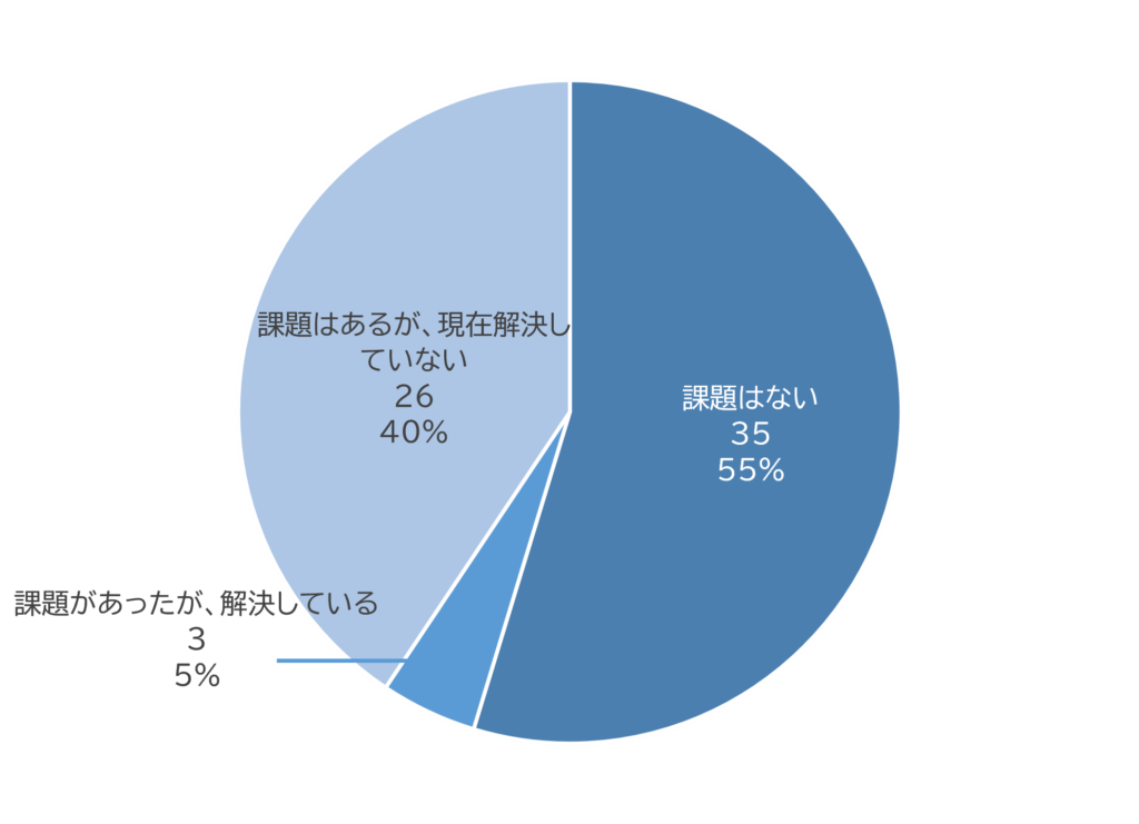 データ連携基盤に接続するサービスについては、「課題はない」または「課題があったが、解決している」と回答した自治体が合わせて約60%を占め、半数以上でスムーズな運用が行われています。 一方で、「課題はあるが、現在解決していない」と回答した自治体も26自治体(40%)存在しており、サービスの拡充や運用継続において依然として障壁があることが明らかになりました。 主な課題としては、機能追加や連携にかかるイニシャル・ランニングコストの高さ、接続する費用対効果の不明瞭さ、サービス提供事業者との調整などが挙げられています。